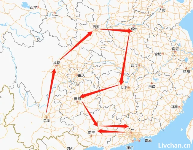 旅馆杀手云南境内流窜作案路径